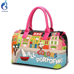 Russia STYLE Braccialini Style Cartoon Women Bags Leather Patchwork Embroidery Handbag Shoulder Bags Cross Messenger Bag