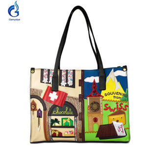 Sweden Women Bags Leather Patchwork Embroidery Handbags Shoulder Bags Cross Body Bag Braccialini Handmade Cartoon
